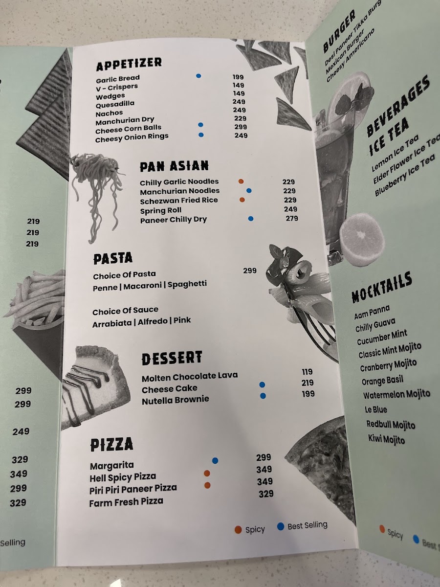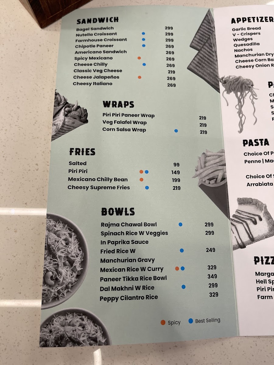 The menu impressively caters to a variety of palates. Indulge in their rich Molten Chocolate Lava or the decadent Nutella Brownie for a sweet finish. Pizza enthusiasts can enjoy options like the classic Margarita or the bold Hell Spicy Pizza. Meanwhile, wraps like the Piri Piri Paneer Wrap and Veg Falafel Wrap offer a delightful twist on casual dining.